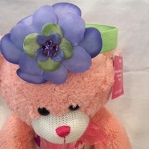 Purple and Green flower petals, purple rhinestone center, green elastic back, girls headband.