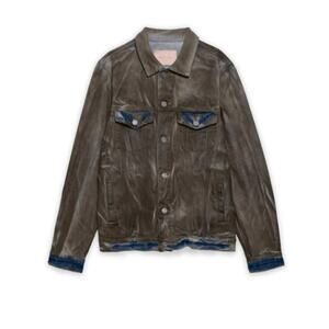 PURPLE BRAND Dirty Resin Coat Distressed Painted Denim Jacket Green Sz S {3U35}