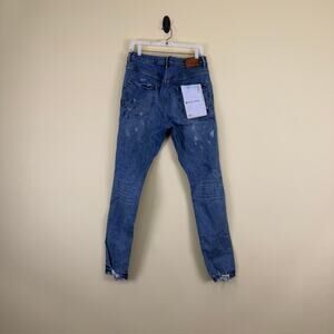PURPLE BRAND Ripped Knee Blowout Slim Jeans Blue Distressed Denim P002 Size 34