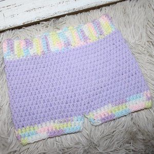 This handmade diaper cover is crocheted in rich purple yarn for a standout look that’s perfect for newborn photo shoots, baby showers, or everyday snuggles. Sized for 3–6 months, it’s soft, stretchy, and full of boutique personality.