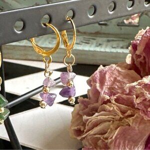 PURPLE CRYSTAL GOLD STATEMENT AMETHYST EARRINGS