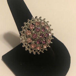 Purple & Pink Rhinestone Ring Filigree design Adjustable band Face: 1 1/4" diameter Great Condition!