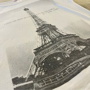 PURPLE SNOW White Eiffel Tower M PARIS Tunic Cap Sleeve Shirt Stretch