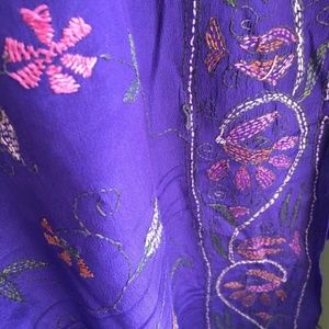 PURPLE embroidered Kantha Crepe Silk SAREE 200"
