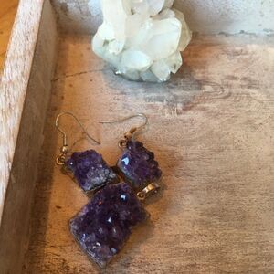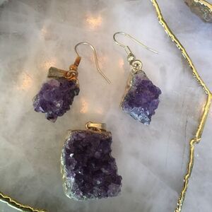 Purple Raw Amethyst Earrings & Matching Pendant!