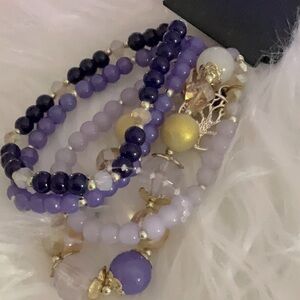 PURPLES AND GOLD TONE STRETCH BRACELET SET