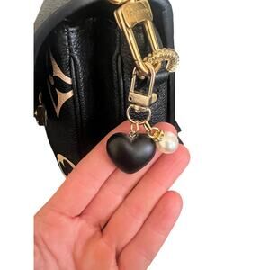 PURSE CHARM HEART PEARL WITH BLING CYSTALS GOLD HARDWARE HANDBAG BACKPACK BLACK