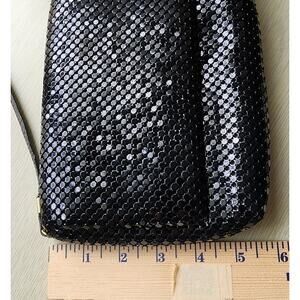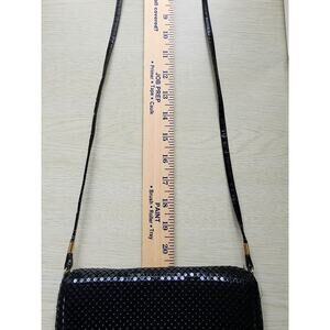 PURSE-HANDBAG-CLUTCH-Black Mesh-Shoulder Strap-Snap Closure-Shiny