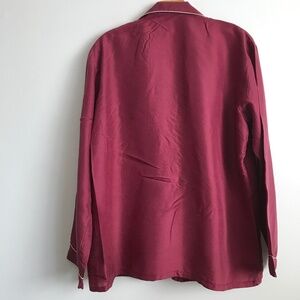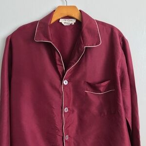 PUSILK Red PJ Silk Shirt Red Long Sleeve Mens L