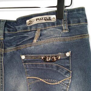 PUZZLE Classic Wear Jeans Wide Leg Distressed Size 30