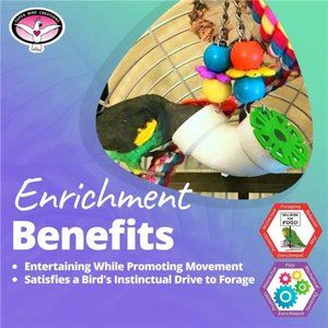 🧿ENRICHMENT BENEFITS - the PVC Forager bird toy is designed to not only entertain but also to help satisfy a parrot's instinctual drive to forage. Foraging devices require birds to search for their food. Placing foraging toys at various levels in the cage will promote movement.