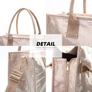 PVC Tote Bag Waterproof Kraft Paper Letters Print Large Capacity Unisex