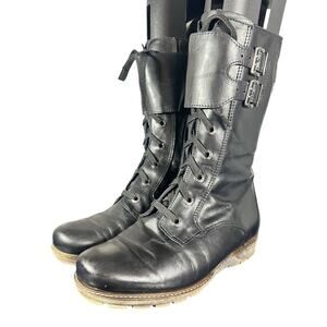 PW Brodie Black Combat Wedge Ankle Boots - Size 6 / 6.5