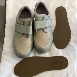 P.W. MINOR CLAY TAUPE LEATHER COMFORT SHOES. NEW. SIZE IS 7 TRIPLE WIDE WIDTH. EASY ON AND OFF. EXTRA INSOLES. THE FRONT TOP TOE AREA STRETCHES FOR EXTREME COMFORT. REGULAR PRICE $110. ABRASION RESISTANT; MOISTURE WICKING; QUICK DRYING; HIGH TECH