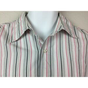 PX Clothing Mens Striped Button Up Shirt Pink Gray Size Medium