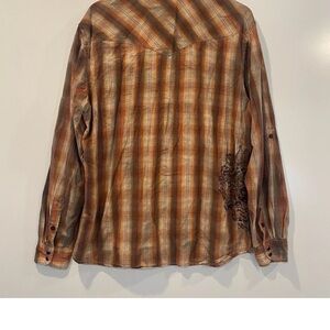 PX Custom Rags Plaid Embroidered Western Pearl Snap Shirt Mens XL (1192)
