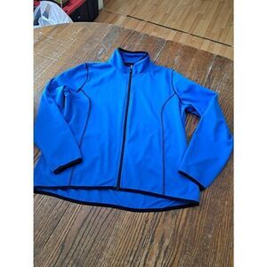 Good Used Condition Women's Size PXL Kim Rogers Petite Two-Piece Track Suit- Blue and Black. Long Sleeve Front Zip Blue with Black Track Jacket with Pockets and Black with Blue Elastic Drawstring Waist Track Pants Sweatsuit Warm Up Set