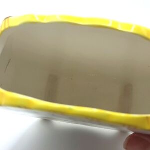 Charming and whimsical, vintage planter. Colorful floral design fill all 4 sides. 5.5in tall .Glazed ceramic inside and out.