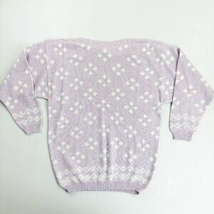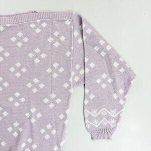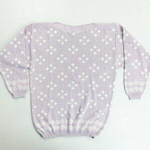 PYKETTES Vintage 80s Sweater Medium Boatneck Retro Lavender Diamond Print
