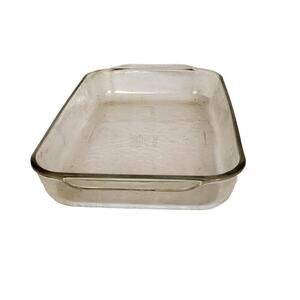 This vintage Pyrex casserole baking dish is a must-have for your kitchen collection. Made of clear pressed glass with a glossy finish, it has a capacity of 3 QT and a rectangular shape with one compartment. The dish is an original piece from the 1980s, manufactured in the United States with fused glass production techniques and an impressed backstamp.