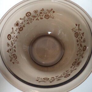 PYREX Friendship Birds Hearts Amber Brown Set 2 Nesting Mixing Bowls 322 and 323
