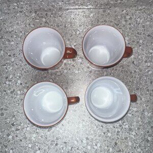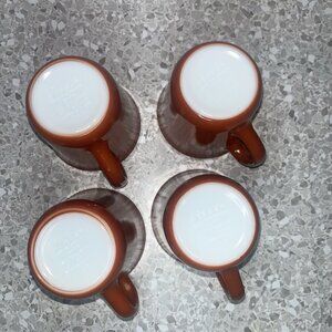PYREX Milk Glass Rust Burnt Orange D Handle Coffee Mug Cup Set of 4 Corning USA. Microwave safe. NO stovetop or broiler.