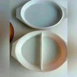PYREX "OLD ORCHARD FRUIT" Brown Cinderella Nesting Bowls & Divided Casserole