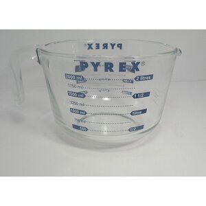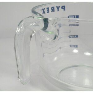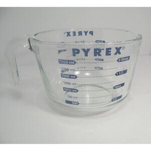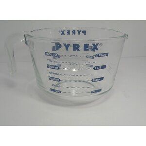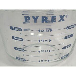 PYREX RARE Blue Vintage all capital letters 2 Quart / 8 Cup Glass Measuring Cup With Handle