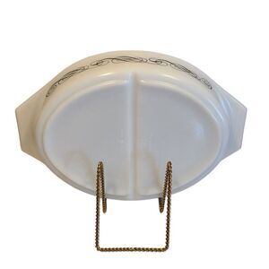 Vintage PYREX White & Black Scroll Oval DIVIDED CASSEROLE Dish | 1.5 Quart with Lid 945 C 10 | Excellent Used Vintage Condition | No chips or cracks | *Not sure if this is the original lid | 3.14 lbs. Before packaging | Please refer to the photos for the condition.