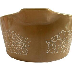 This vintage Pyrex casserole dish in the Woodland pattern is a beautiful addition to any kitchen or collection. With its round shape and 1.5L capacity, it's perfect for baking and serving your favorite dishes. Made of durable glass, it's sure to last for years to come. The unique Cinderella nesting design makes it easy to store when not in use. This piece was manufactured in the 1970s, adding a touch of retro charm to your home. Add it to your collection or use it to bake up something delicious.