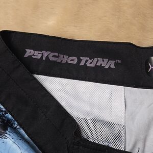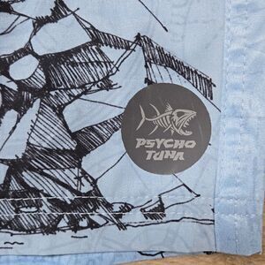 PYSCHO TUNA LIGHT BLUE SKETCHY BOATS OLD SHIPS BOARD SHORTS, SIZE 36