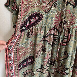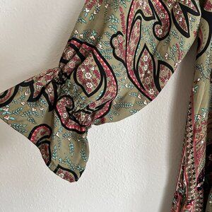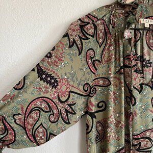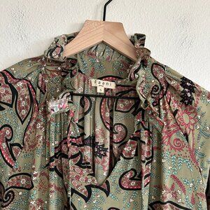 Paani womens size small green/multicolor paisley print tiered ruffle maxi dress.