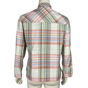 Pab by Ole Bordon vintage plaid blazer with faux pockets, button closure, and mandarin collar. Great condition. 1960s vintage size 14 equals about a medium now, but please check measurements below for proper fit. Please see pictures for more details. Measurements taken with item laying flat.
