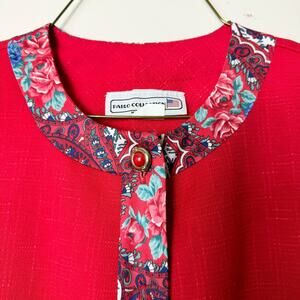 Pablo Collection Red Textured blazer with floral paisley trim detail Size 12