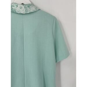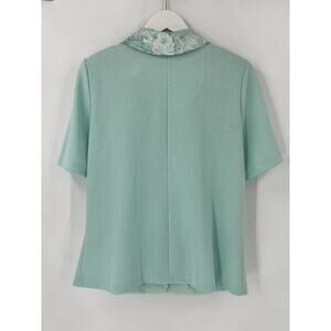 Pablo Collection Vintage Blouse Womens 14 Mint Blue Floral Collar Knit Buttons
