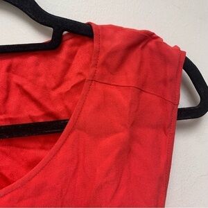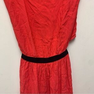 Stunning Pablo Gerard Darel Red Dress. Scoop neck. Contrasting black band around waist. Slight open back detail. Hidden zipper back. Size 34 is a 2. Please see measurements.
