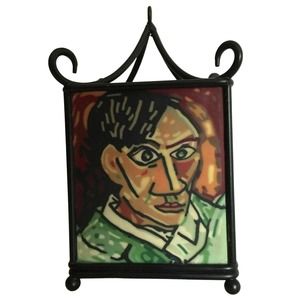 Pablo Picasso Cubism Self Portrait Glass & Iron Lantern Tea Light Candle Holder