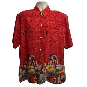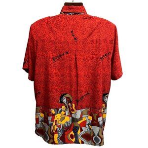 Pablo Picasso Vintage 80s Pop Art Print Red Button Front Camp Shirt XL Pocket