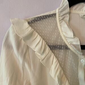 Pablo Women's size 38 White Ruffle Button Down Blouse French Viscose Lightweight
