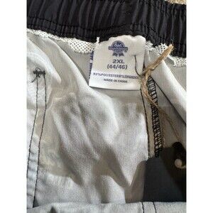 These Pabst Blue Ribbon beer-themed swim trunks in size 2XL feature a bold blue color with picket detailing, adding a unique and fun touch to your swimwear collection. Made by the iconic beer brand, these machine washable trunks are perfect for recreational activities in the water. Whether you're lounging by the pool or taking a dip in the ocean, these swim trunks are sure to make a statement with their beer-inspired design. Perfect for men who love both fashion and fun.