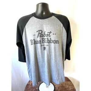 Pabst Blue Ribbon Beer Raglan 3/4 Sleeve Shirt Gray L