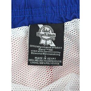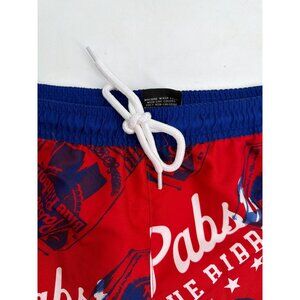 Pabst Blue Ribbon Size L Red Blue Swim Shorts Mens Recycled Polyester NWT