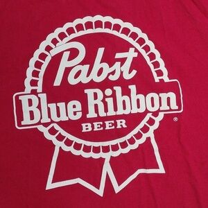 Pabst Blue Ribbon men's XL t shirt. There is some cracking on the lettering on the shirt. The first pic is the true color of the shirt. There is some discoloration of the red coloring on the shirt