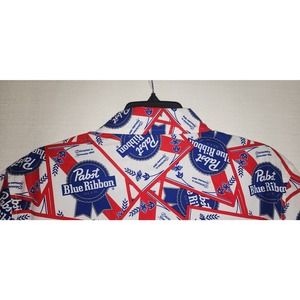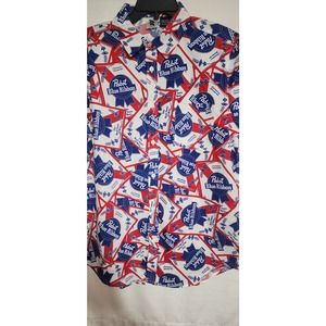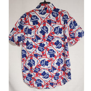 Pabst blue ribbon beer collared button up short sleeve shirt medium