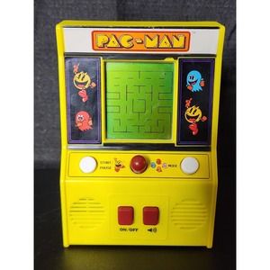 Step back in time with this Bandai Namco Pac Man Hand Held Mini Arcade Style Video Game. Enjoy the nostalgia of the classic game while playing on this compact and portable device. With a joystick and retro design, you can relive the excitement of the 80s in the palm of your hand.