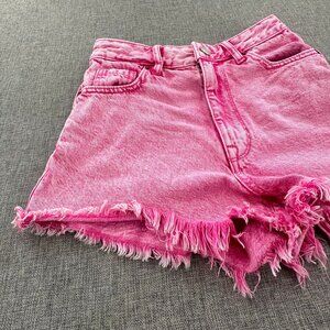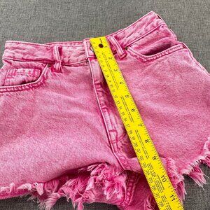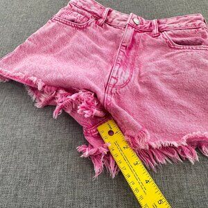 Pac Sun Cut Off Shorts Pink Fringe 24 Waist Cotton Mid Rise Mini Short Shorts