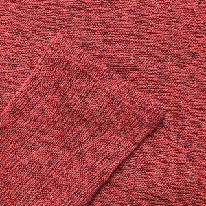 Knit top (slightly see-through); pretty coral and teal threads; open keyhole back; 3/4 sleeves; long on the torso; XS- fits true to size