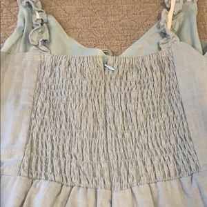 This is a blue PACSUN romper. The brand is Lollie Moss. it has never been worn however the tags are off. It’s a size large and fits like one. Great for the summer. There’s a zip up in the back.