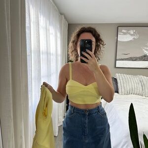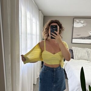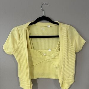 This PacCares set includes a cropped tank and matching button-up cardigan in a dreamy pastel yellow—perfect for sunny strolls, brunch dates, or cozy study sessions.