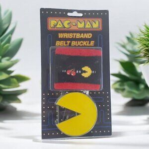 Pac-Man Belt Buckle & Wristband Set 2010 New Old Stock Namco Bandai Games Pewter